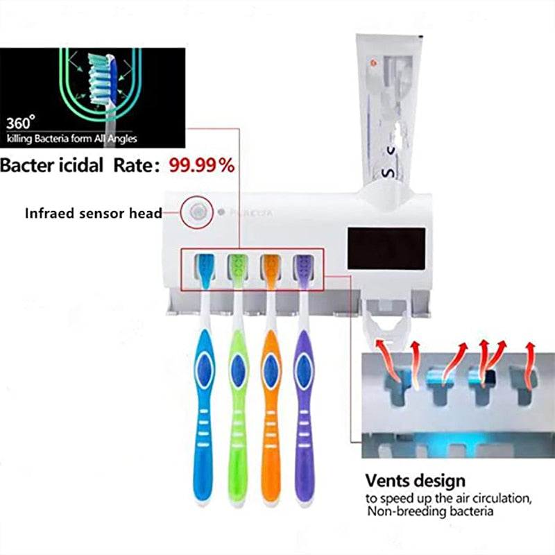 - 360 °Sterilization and Continuous bacteriostatic: The UV toothbrush sanitizer is given you and your loved ones a clean toothbrush and peace of mind every day. A photocatalyst is sprayed into the antioxidants of a toothbrush and is activated by violet light as a continuous antimicrobial substance.