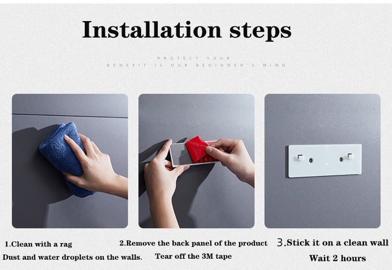 Please first open the bottom paper of the backboard glue on the toothbrush holder, stick it on the clean wall, glass or cabinet, and press it gently (the backing plate is glued for 24 hours before using the extended toothbrush holder body) If it is a painted wall, it can be punched and installed, and our package is equipped with screws.